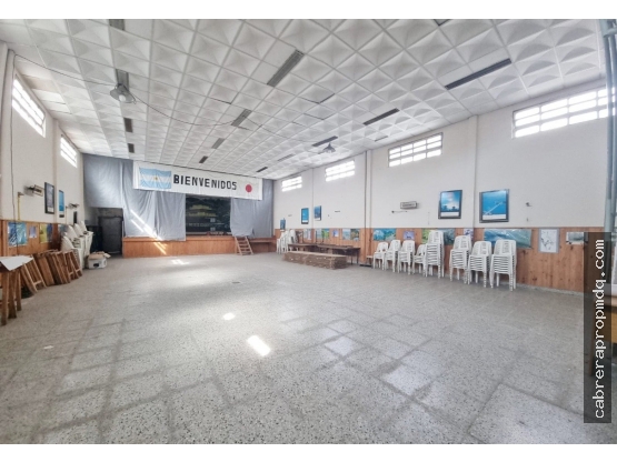 Planta Baja: Recepción (4.85x5.6), gran salón (9.67x14.57) con escenario (4.11x8.14), cocina/bufette (6.32x3.16), baños para damas (4.11 x2.14 con 4 baños individuales) y caballeros (2.77x2.01 con 3 baños individuales). Aula al frente (3.97x6.1) Patio con espacio verde atrás. Espacio de jardín al frente.